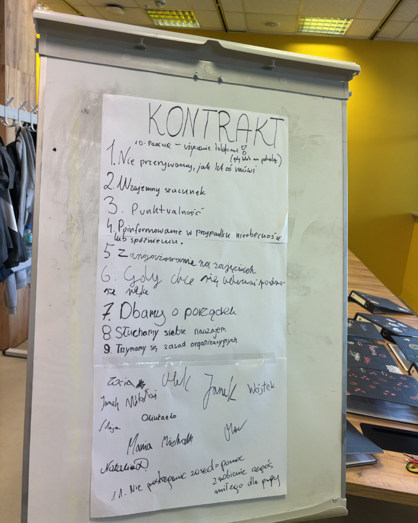 Od początku zajęć towarzyszyła pozytywna, przyjacielska atmosfera. Choć niektórzy podchodzili do zajęć z nieśmiałością, z każdą kolejną aktywnością grupa coraz bardziej się otwierała, a pod koniec spotkania było już wyraźnie widać większą swobodę i zaangażowanie.